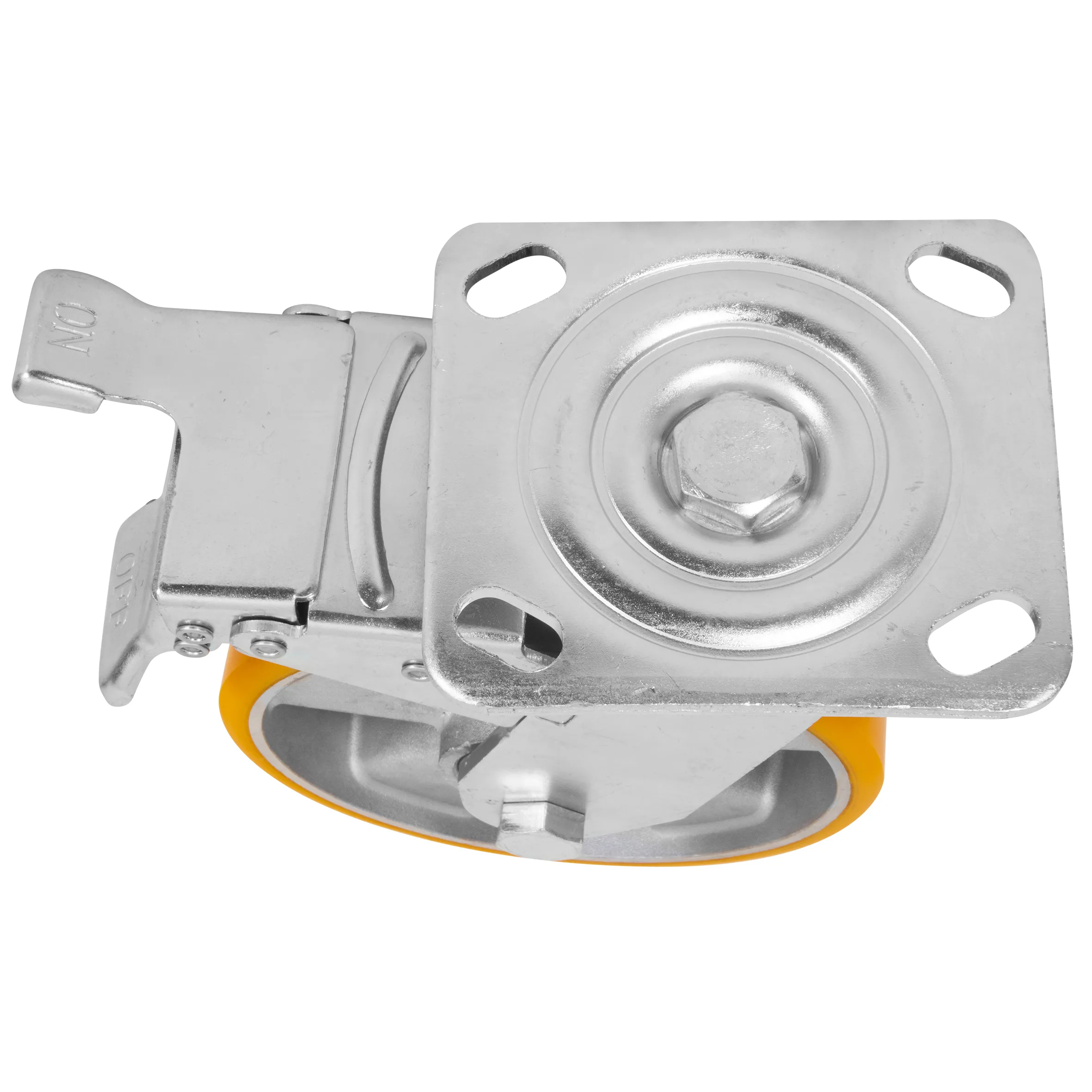 RODAJA DE ALUMINIO PU NARANJA GIRATORIA CON PLACA Y FRENO 4"