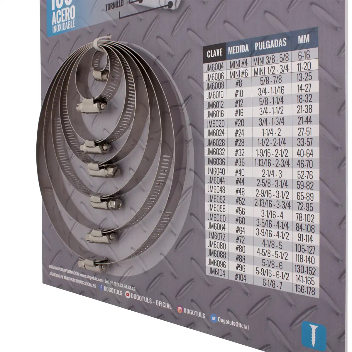 MUESTRARIO DE ABRAZADERA SIN FIN 7 PZAS