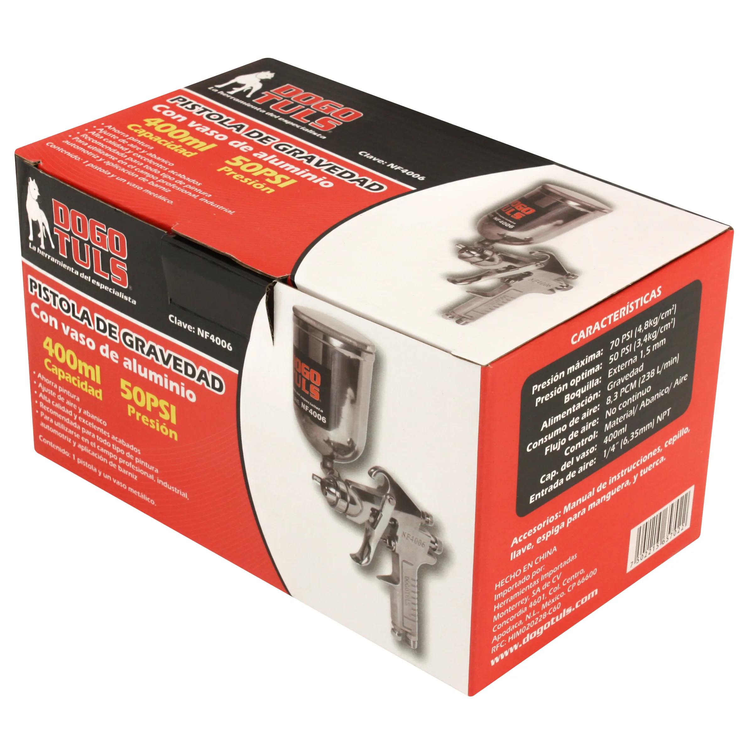 PISTOLA HVLP DE GRAVEDAD 600ML 50PSI